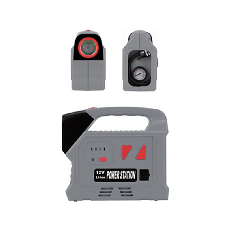 Tá cumas boilscithe láidir ag an gcomhbhrúiteoir aeir agus féadann sé freastal ar riachtanais boinn agus trealamh boilscithe eile. Tá sé oiriúnach le haghaidh cásanna éagsúla, cibé acu is eachtraíochta lasmuigh nó úsáid laethúil é, is féidir leis cúnamh tráthúil a sholáthar. Tá an chuid solas oibre stiúir comhdhéanta de choirníní lampa il, le gile aonfhoirmeach agus fada buan, ag soláthar foinse solais leordhóthanach le haghaidh obair oíche nó soilsiú, agus le feidhm flashlight aon-bhata, feabhsaíonn sé éagsúlacht agus praiticiúlacht soilsithe tuilleadh. Feabhsaítear cumas leathnaithe na feiste trí chomhéadan USB agus comhéadan níos éadroime toitíní a chur leis. Is féidir le húsáideoirí fón póca, táibléad nó gléasanna leictreonacha eile a ghearradh go héasca chun soláthar cumhachta feistí cumarsáide agus siamsaíochta a choinneáil. Díríonn dearadh an táirge ar mhonatóireacht fíor-ama ar stádas ceallraí. Taispeánann an táscaire LED go soiléir an chumhacht atá fágtha, rud a ligeann d'úsáideoirí stádas an fheiste a thuiscint go tráthúil agus briseadh cumhachta tobann a sheachaint. Cinntíonn an cuibheoir muirir AC/DC meaitseála solúbthacht na modhanna éagsúla muirearaithe chun freastal ar riachtanais muirir i dtimpeallachtaí éagsúla.